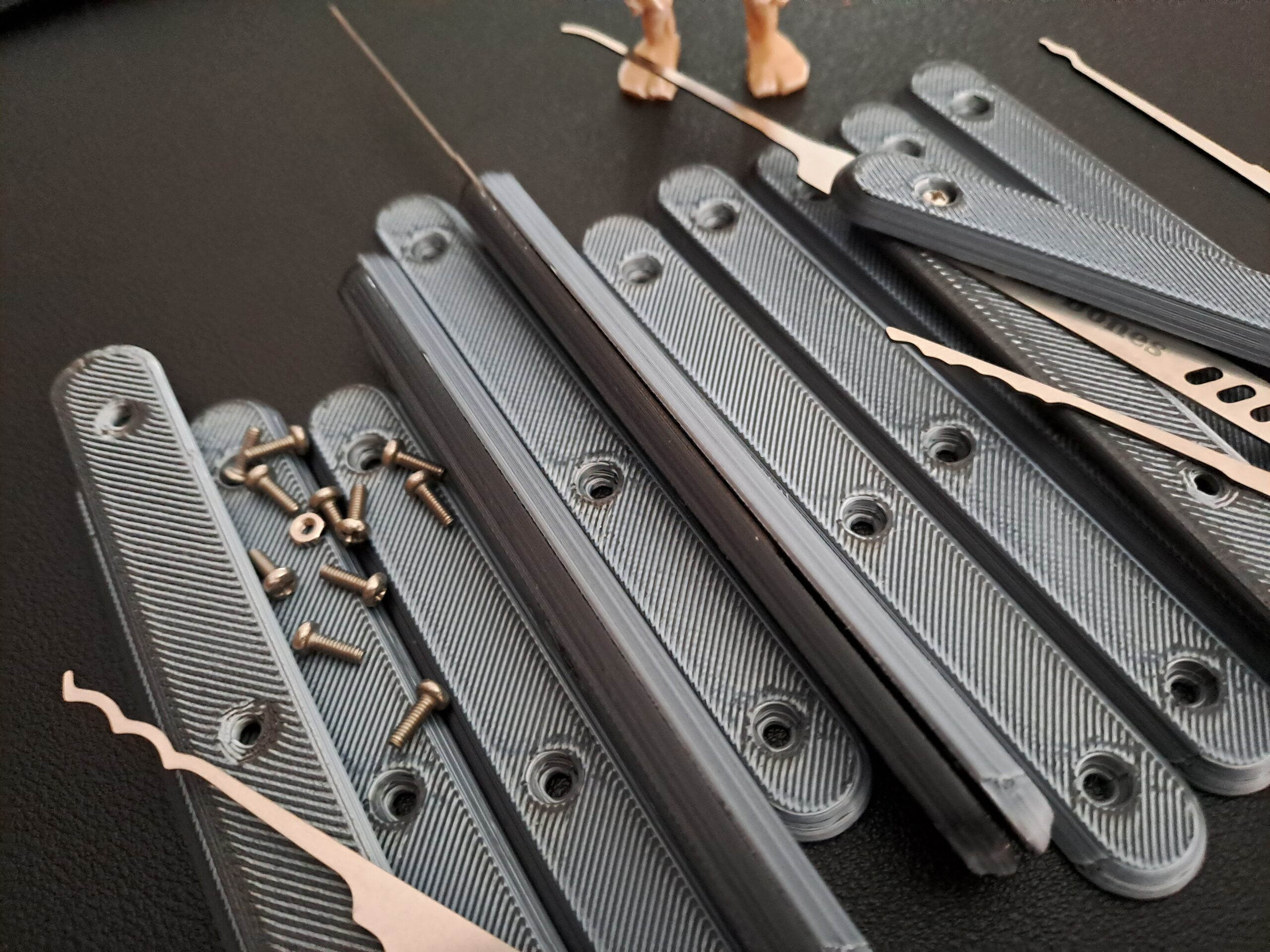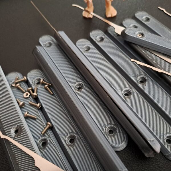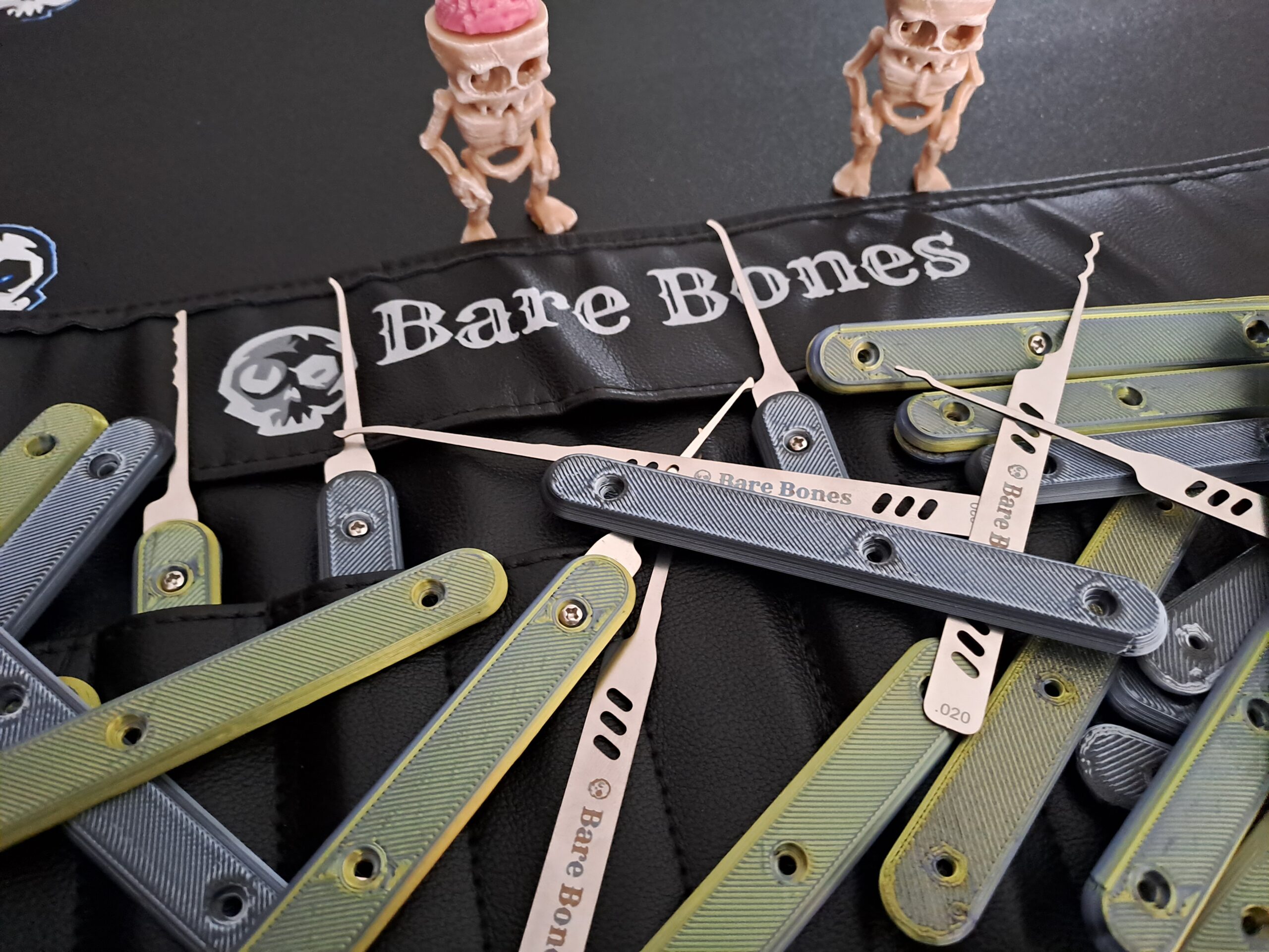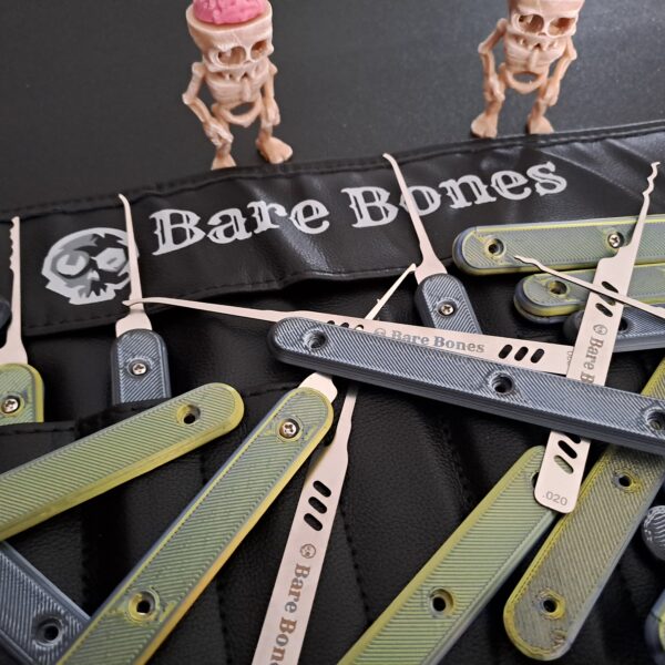 The ‘Bone Grip’ is a symmetrical and reusable PETG handle which attaches to the Bare Bones lockpick handles via 3 bolts/nuts. All fixtures are 304/316 stainless steel and are included. The end result is a secure attachment which is fully removable.