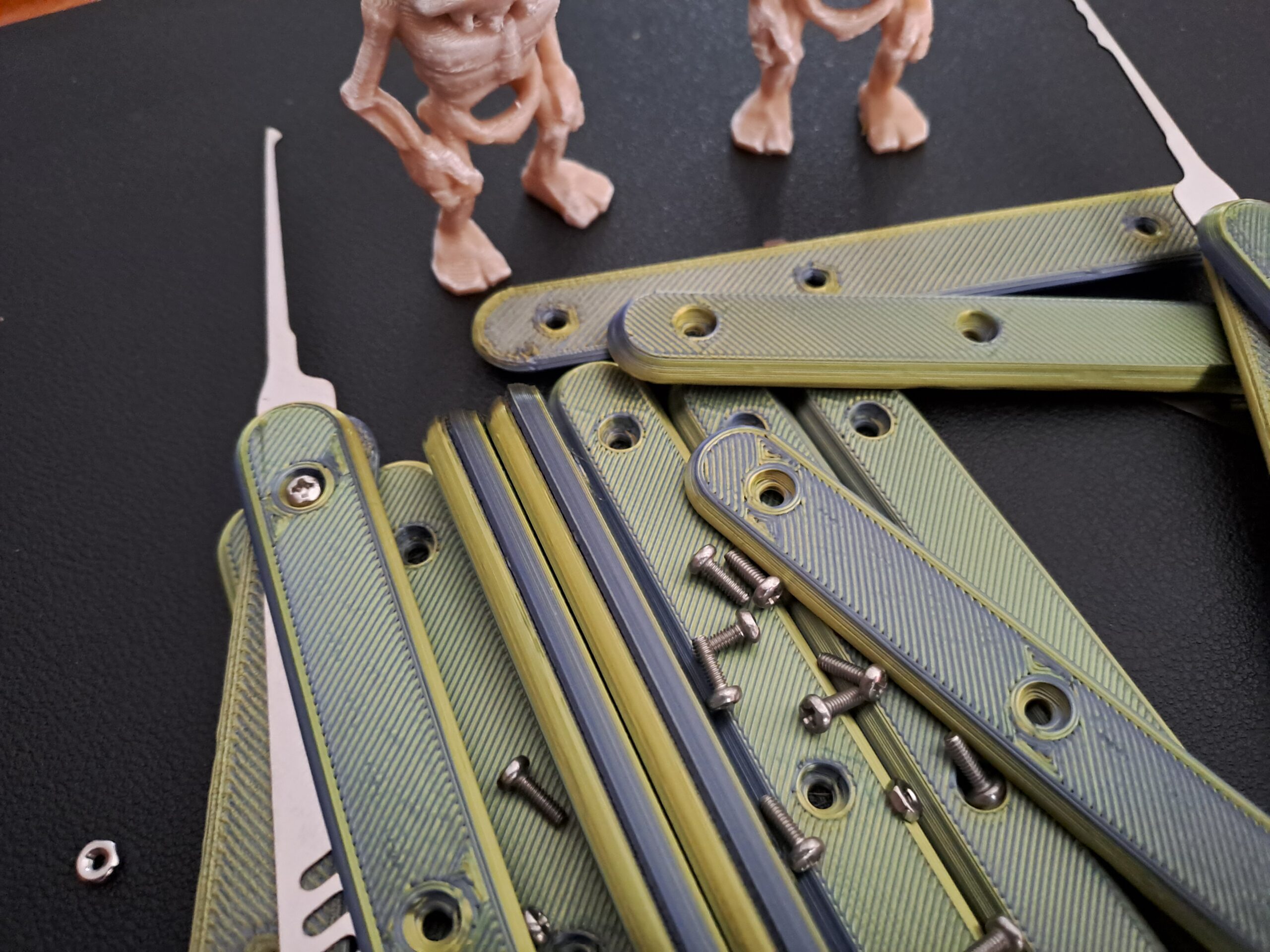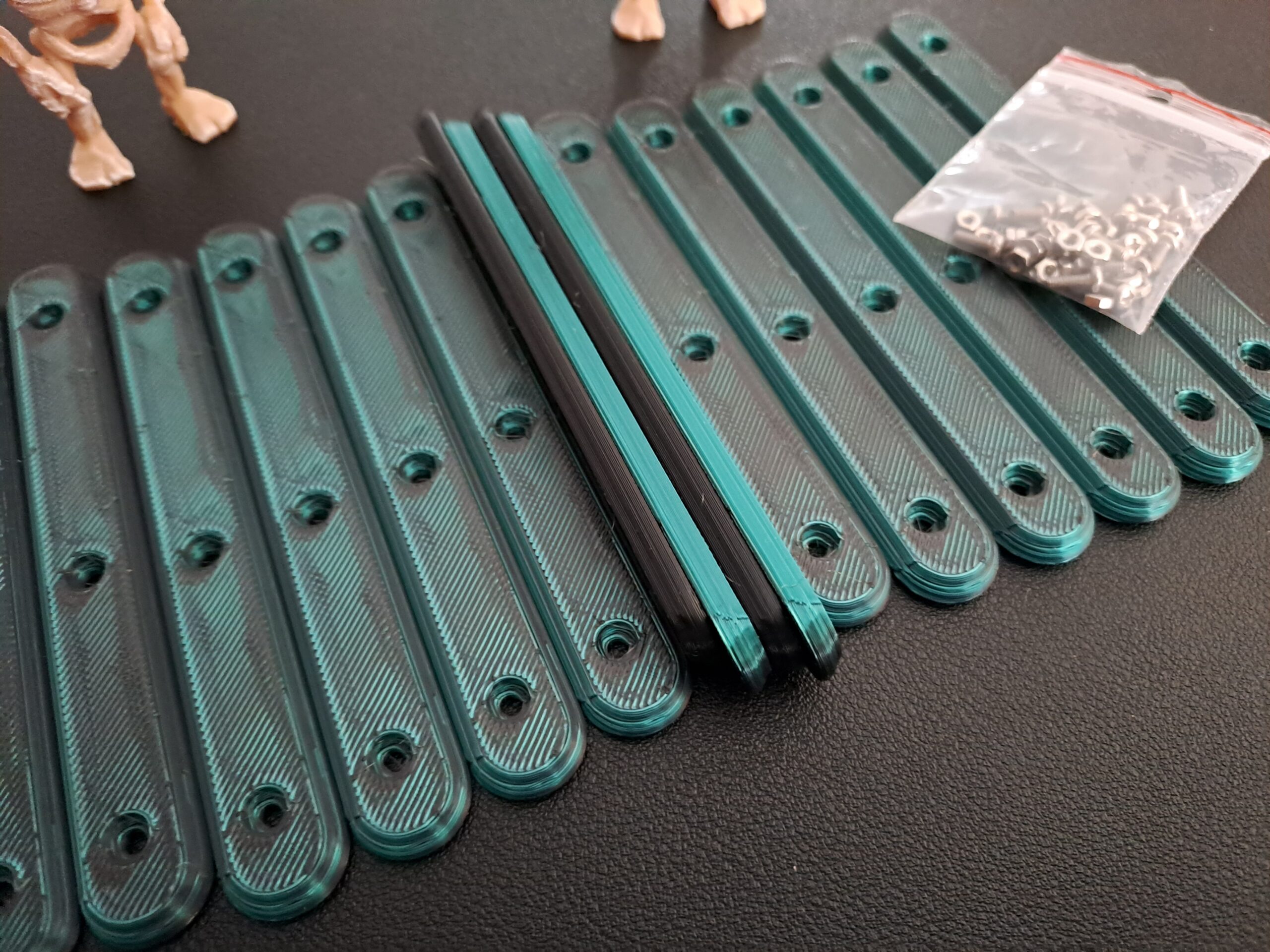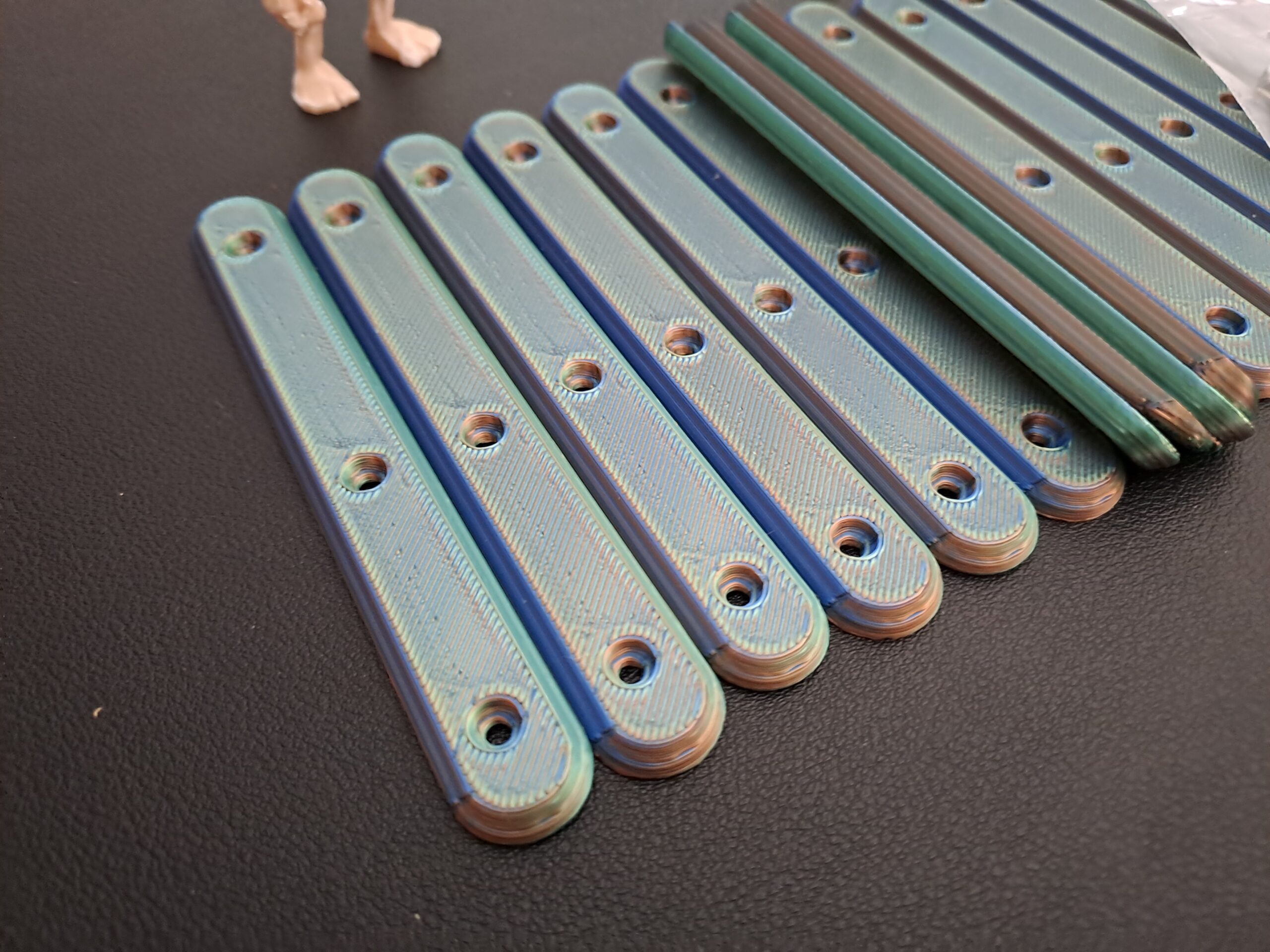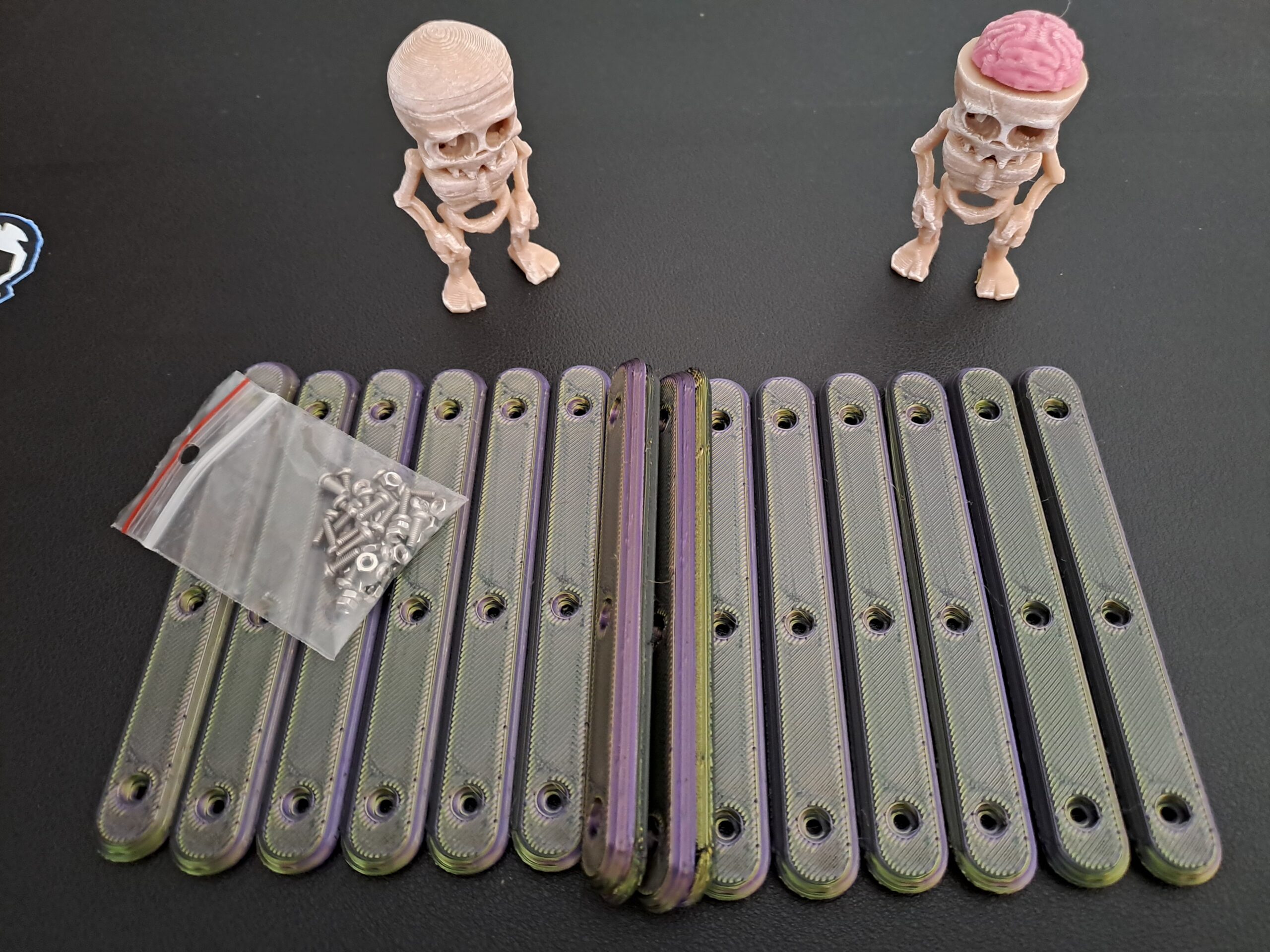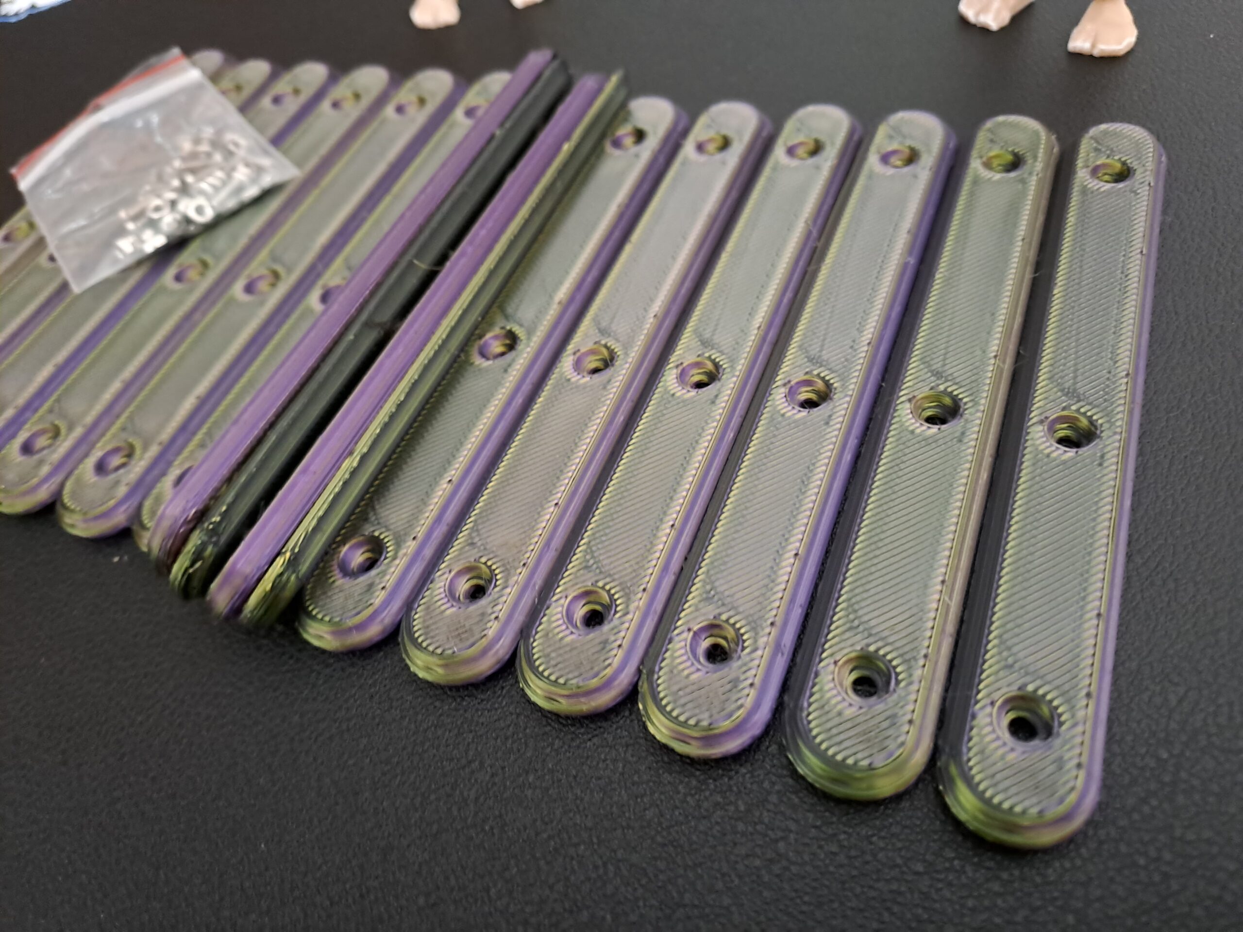 Multi-Coloured ‘Silk’ 8 pack version of the ‘Bone-Grip’ reusable handles. Each set combines two part colour combinations which interleave through the whole handle . Supplied with 24 x M2 6mm bolts and 24 x m2 nuts are included.
